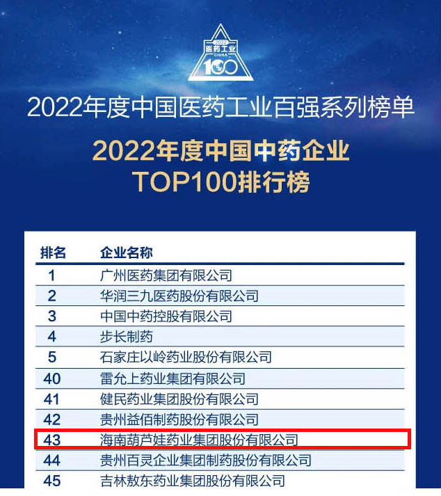 mg冰球突破药业集团连续4年荣登“中国中药企业TOP100排行榜”,排名上升至第43位